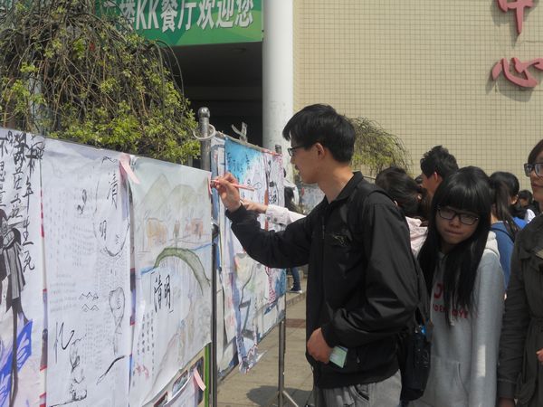 为增强同学们对中国传统文化的重视,预防医学系团委以清明节为契机,于4月2日中午在老食堂门口举办以“清明时节”为主题的创意海报评选活动。 本次参与评选的海报是以清明节为线索,民风、民俗等为内容进行创意绘画的。活动中,近20幅来自预防医学系各个年级不同班级的同学们精心绘制的海报被张贴在展板上参与评选,以便让过往的员工选出两幅自己所心怡的海报。在活动现场,人潮涌动,同学们都积极的为自己所喜爱的作品投上宝贵的一票。大家在热情为海报投票的同时,也驻足欣赏参赛选手们用心所创作出的精美作品,感受到清明节来临之际浓浓的节日气氛。