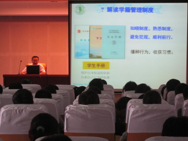 9月19日,教务处副处长杜少陵老师就有关学籍方面的管理规章制度进行了详细的解读,让同学们尽早地对学籍管理、学历管理、学位评定、考试考场规则、选修辅修课程及违纪处分等方面有了全面的认识。图书馆朱玲老师给同学就图书馆使用、借还书规章制度、文献查阅等方面进行了细致地讲解。