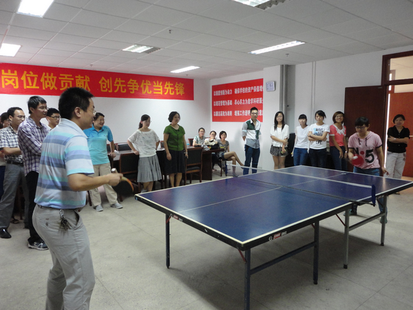 在第28个教师节即将来临之际,为丰富师生们的业余生活,加强师生间的情感交流,预防医学系于9月4日中午开展师生联谊乒乓联赛, 部分师生观看此次比赛。 本次比赛本着重在参与,加强交流,共庆教师节的目的,老师与员工两两随机组合,进行对打。比赛采用三局两胜制,单局11分制。由裁判统计各自得分,评选出员工组与教师组的前三甲。在比赛中,师生们都充分发挥自己的实力,挥汗如雨,不断出现精彩的拉球与扑杀等,比赛现场的气氛也随着比分的起伏不定而高潮迭起。最终,由文育锋、陈佰锋和贺连平三位老师摘得教师组的冠亚季军,员工组的顾琦俊、王伟和魏亚萍分获第一、二、三名。比赛最后由校乒乓球协会的会员(我系员工)进行了观摩表演赛。 本次比赛,师生们在切磋球技的过程中,展现了师生和谐共进、积极健康的运动风采,增进了彼此间的认识。与此同时,也为共创师生团结协作、共同奋进的校园精神风貌作出了努力。
