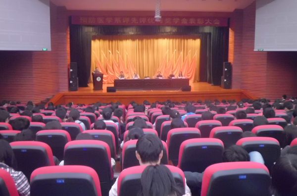 4月11日晚,预防医学系在校老员工活动中心隆重举行2010-2011学年度评优评先与奖学金表彰大会。邀请了校员工处处长李军华、教务处副处长杜少陵、团委副书记李娜等领导以及预防医学系全系师生参加了大会。大会由预防医学系副主任文育锋主持。