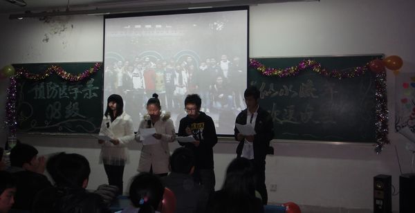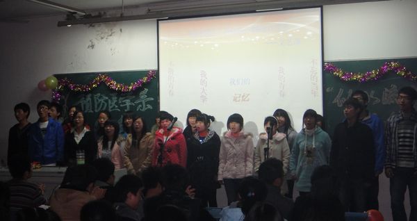 为欢送预防医学系首届员工赴实习点开始新的征程,上周在西教504教室预防医学系团委员工会举办了2008级“似水流年”欢送会。 欢送会现场气氛热烈、节目精彩纷呈。2008级辅导员陈雪娟老师向2008级同学转达了系领导和老师们对大家的亲切慰问以及美好祝愿。同时,“青春纪念册”幻灯片展示了2008级同学们四年来在皖医丰富多彩的学习及课余文化生活,勾起了大家曾经一起欢度美好时光的珍贵记忆。活动中,观众互动的小游戏带来了不绝于耳的欢笑声。一首< <朋友>>表达出了同学们内心真挚的情感,全场的合唱让此次欢送会在温暖感动的旋律中圆满结束。