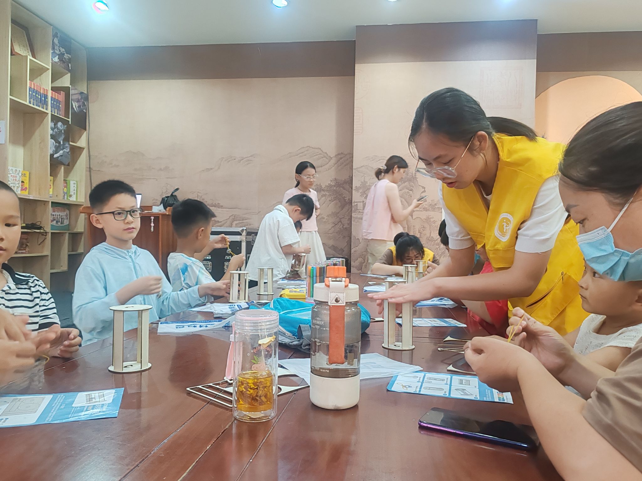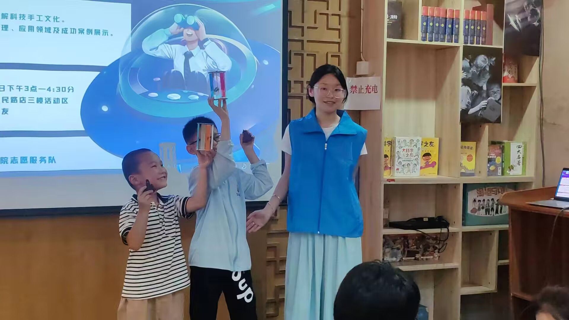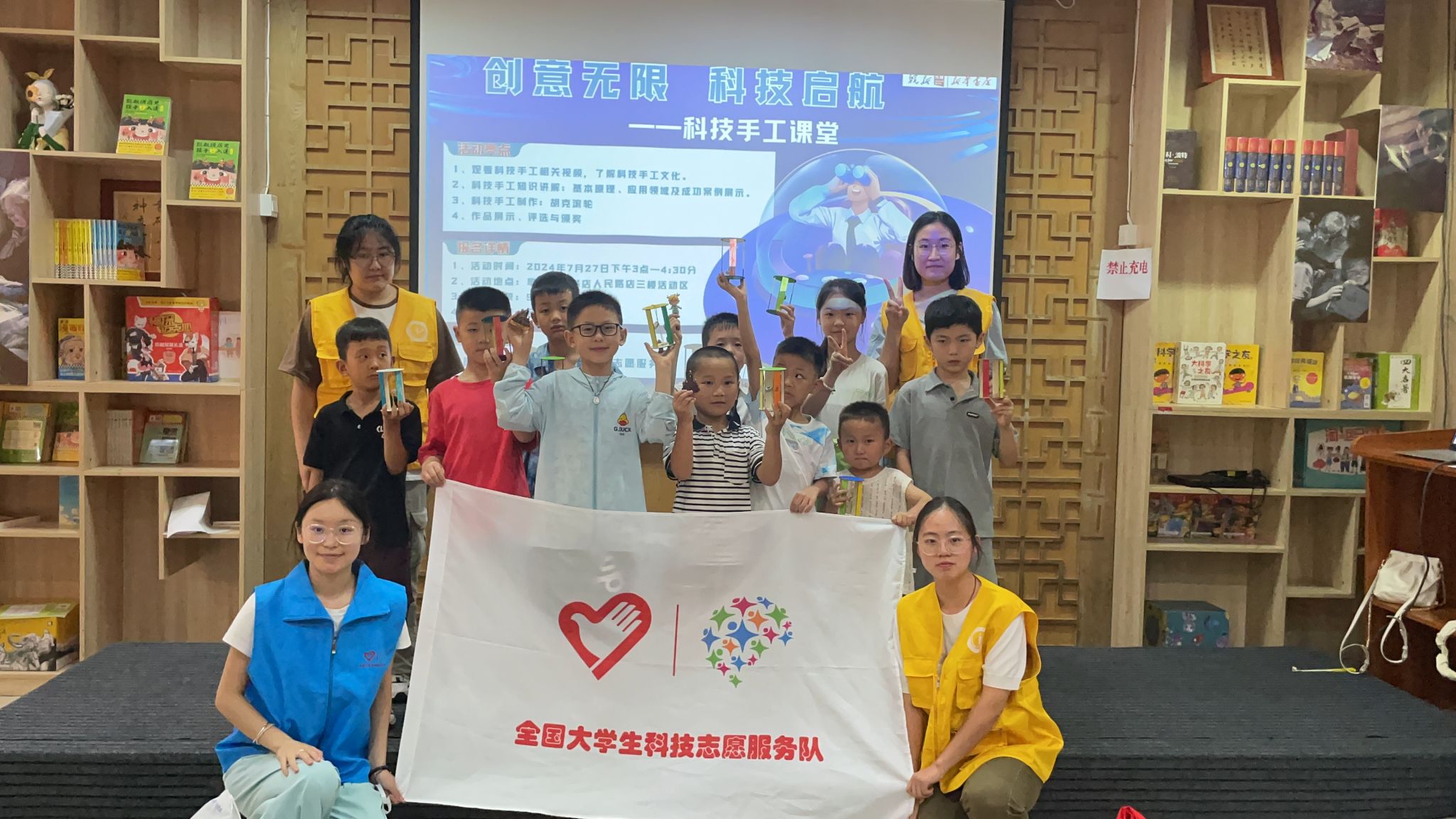 为贯彻落实习近平新时代中国特色社会主义思想,通过科技与艺术的结合,激发孩子们的创造力和想象力,7月27日,m88官网“芦花”志愿服务队联合阜阳市新华书店共同开展了科技手工课堂活动。众多小朋友齐聚一堂,共同参与科技手工胡克滚轮制作及绘画创作,共同播撒科技创新之种。