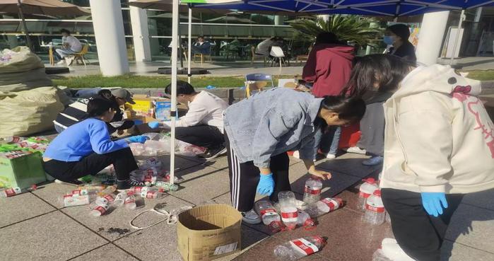 集瓶热情烈日难阻。活动中,同学们一起收集塑料瓶,共同减少塑料污染,认真且珍贵。一起为校园环境的美好添砖加瓦,是我们有责任且值得去做的事情。活动最后,大家用瓶盖拼成环保的标识,用图画呼吁大家一起为环保献出自己的力量。一个个瓶盖就像一双双手共同筑起了我们的环保家园,这需要我们每个人去呵护关爱。活动结束后,塑料瓶由志愿者送至垃圾分类站,实现循环利用。这种以旧换新的活动不仅让同学们提高了环保意识,还感受到共同环保带来的好处。