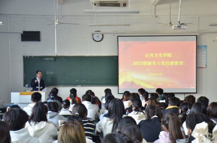 党性教育——学习新思想、青春新建功。经过短暂休息,金岳龙为学员们带来了以“学习新思想、青春新建功”为主题的党性教育。课上,他从党的政治理论和指导思想出发从多个方面为学员们深入剖析了青年员工提高自身思想格局的重要性,并建议学员们应当自觉主动地学习百年党史,通过内化自身的政治素养,提高政治站位,努力追求进步、追求先进。随后,他从生活的角度出发,指出青年学子在提高理论站位,积极主动学习马克思主义的经典理论的同时也要重视生活实践,做到学以致用,把所学的理论知识指导学习、工作和生活。最后,金岳龙以公司优秀党员学子的成功经历进行了叙述,并激励同学们要不断提升自己,做到医德双修。他希望学员们能够明确大学奋斗目标,做自己的掌舵人。他指出同学们作为一名预备从事公共卫生事业的入党积极分子,应当自觉地以习近平新时代中国特色社会主义思想武装头脑,永远跟党走,积极投身社会主义建设的伟大洪流,服务中国特色社会主义新时代,无愧于心,无愧于时代。