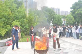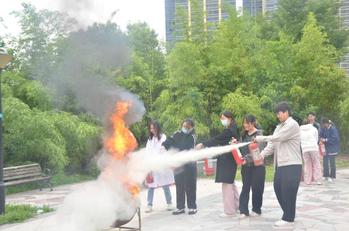 活动中,谢亮带领师生共同学习了消防安全知识、火场逃生技能、常见灭火器材等,仔细讲解了灭火器的种类及其规范使用方法,并重点围绕常见干粉灭火器的使用方法进行了详细阐述。随后,现场师生进行了实地灭火演练。此次演练使用的是4公斤手提式干粉灭火器,现场师生面对熊熊燃烧的火焰,左手提起灭火器,右手先拔掉保险销,随后手握喷射软管喷嘴,站在上风方向,距离火盆1米至1.5米处,左手用力按压灭火器压把,沉着冷静地对着火焰的根部左右扫射,直至火焰被干粉完全覆盖熄灭,整个活动在全体成员的积极配合和参与下圆满结束。