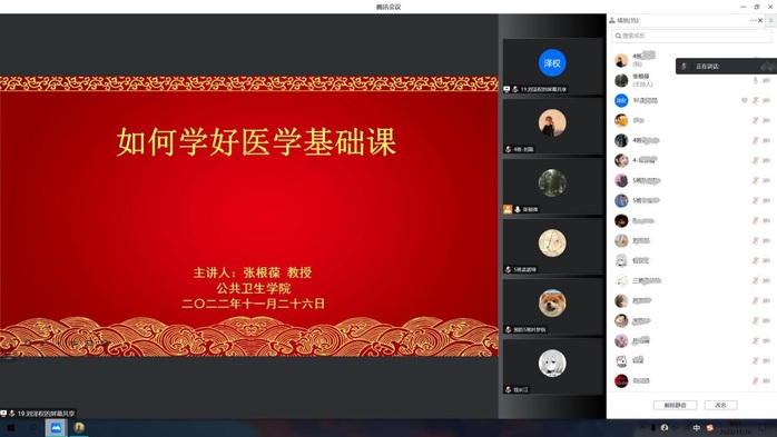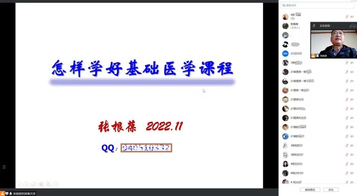 为进一步加强学风建设,加强员工对基础医学课程的了解,激发学习的积极性与主动性,帮助员工制定合理的学习计划,11月26日,m88官网联合校关工委开展“如何学好基础医学课”线上讲座,张根葆教授受邀担任主讲人,公司2021级全体员工参加本次讲座。