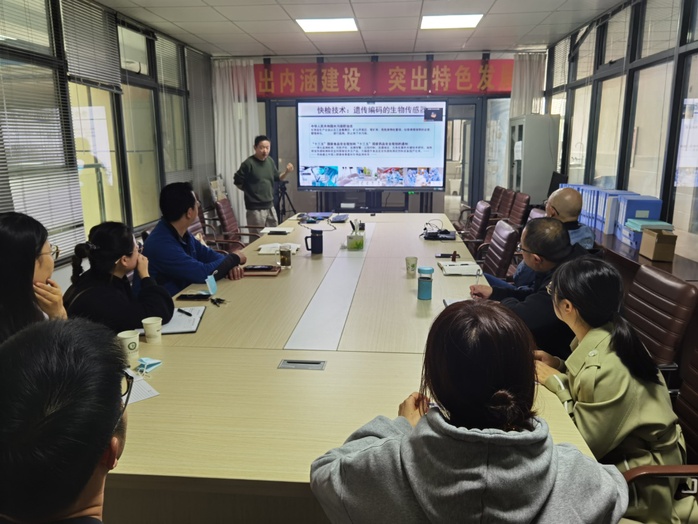 公司高层次人才陈少鹏研究员结合自身的研究领域,以遗传编码的生物传感器构建及应用为题做学术交流报告。本次报告主要介绍了重金属传感器的构建,通过定向进化、大量建库、高通量筛选等方面对传感器专一性和灵敏度进一步优化,最后以检测头发、弋江区白马矿坑中汞含量与实际紧密结合。报告结束,现场师生展开了热烈讨论,进行思想碰撞,产生了许多新的观点和想法。