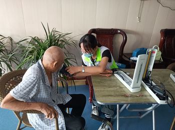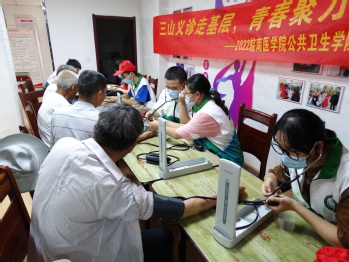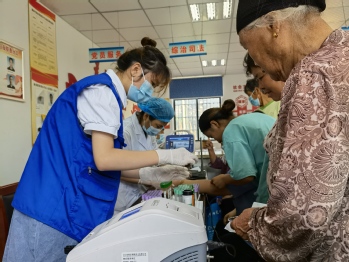 为进一步关注民众健康,各地区实践团队积极与当地社区联系,开展惠民义诊服务,淮南市志愿者奔赴李冲回族乡,为当地少数民族老年人进行健康检测,为基层群众进行血压、体脂、血糖等常规检测,为行动不便的老人进行上门义诊,当好民族团结的宣传者、示范者和践行者,不断铸牢中华民族共同体意识。