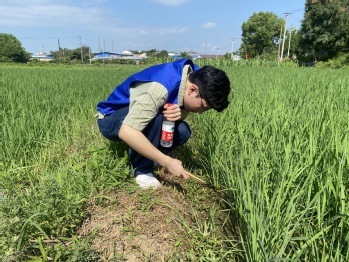 同时,为进一步落实血吸虫病防治工作,志愿者们与疾控中心专业工作人员们一齐,严格按照要求规范,头顶烈日深入到田间地头,对田间沟渠进行地毯式搜寻排查,达到彻底消灭钉螺目的,严防钉螺孳生,巩固血防成果。
