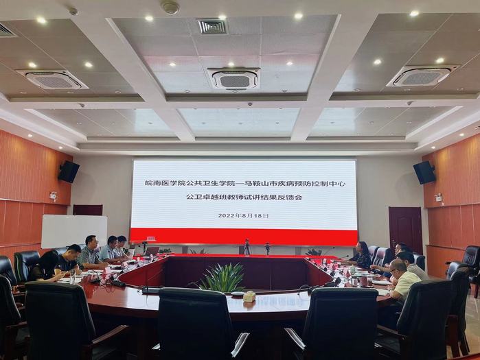 为深入学习贯彻习近平总书记关于“健康中国”战略的重要论述,探索人才培养新模式,稳步推进公司高水平m88官网建设,确保“卓越公卫班”顺利开班,提升基地授课质量和教学效果,8月18日下午,m88官网副经理金岳龙等一行前往马鞍山市疾病预防控制中心开展“卓越公卫班”授课教师试讲活动。专家听课意见现场反馈会议由疾控中心副主任朱明主持,党委书记吕剑剑、主任陈健及骨干教师参加了反馈会议。