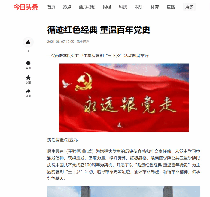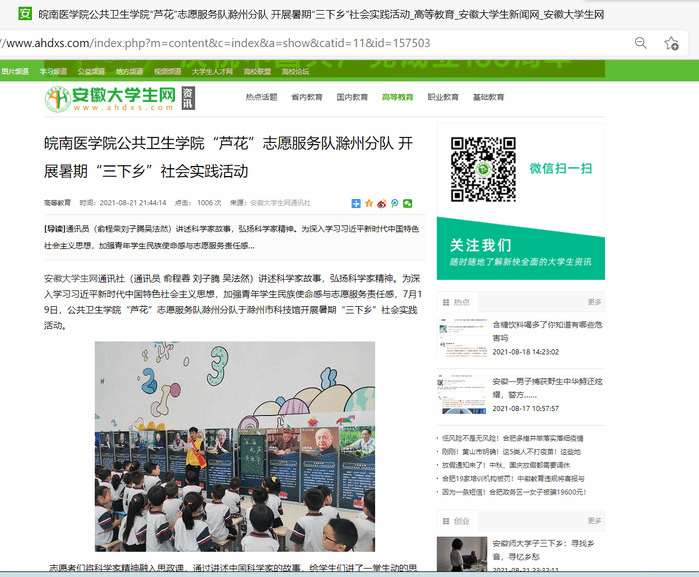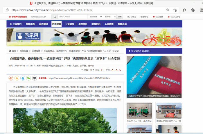 永远跟党走,奋进新时代。为贯彻落实习近平总书记关于青年工作的重要思想,进一步帮助广大青年员工上好思想与实践相结合的“大思政课”,引导同学们在志愿服务中增强责任感和使命感,在社会课堂中受教育、长才干、作贡献,在观察实践中学党史、强信念、跟党走,积极主动地将小我融入大我、青春献给祖国,努力成为担当民族复兴大任的时代新人,以实际行动庆祝中国共产党成立100周年,m88官网利用专业所长,积极组织开展暑期“三下乡”社会实践活动,组建团队30余支,以团队为主、个人为辅的实践方式,严格按照员工所在归属地疫情防控要求,奔赴至基层、社区和乡村,开展以党史学习教育、理论宣讲、国情观察、乡村振兴、民族团结、文明实践、“返家乡”、科技创新、寻访员工等志愿服务为主题的社会实践活动,服务人数达5000余人。刊登新闻稿三十余篇,受到中青网、中国老员工网、安徽老员工网、今日头条、新都市网等多家媒体的报道。