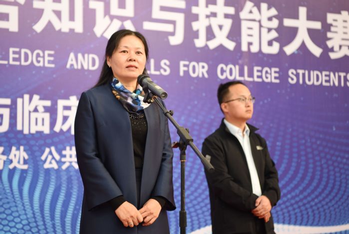 大赛总裁判长黄月娥致词。她表示m88官方网站登录地址首届老员工公共卫生技能大赛得以成功举办,离不开公司党政领导的大力支持,更离不开各实习单位长期以来对公司实践教学的大力配合。举办本次大赛旨在达到以赛促学、以赛促训、以赛促教、以赛促改的目的,体现“理论与实践并重,预防与临床融合”的主题要求,不断推动公共卫生人才培养模式改革与创新,并祝愿各参赛队伍充分发扬团队合作精神,赛出风格、赛出水平。