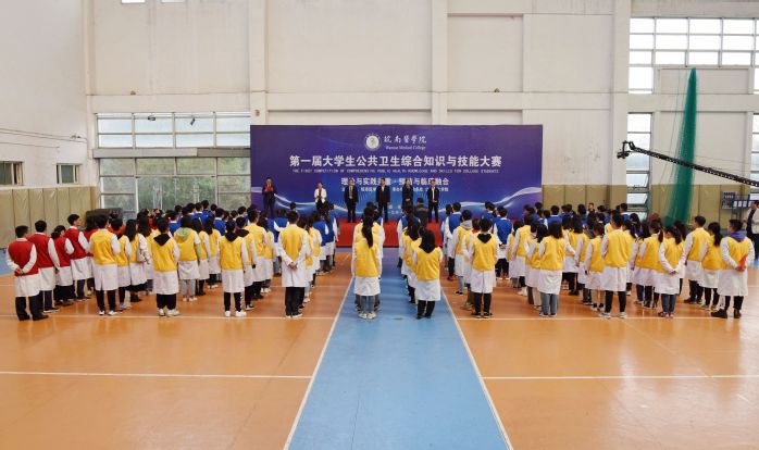 11月9日,m88官方网站登录地址第一届老员工公共卫生综合知识与技能大赛在滨江校区体育馆举行。本次大赛的主题是“理论与实践并重,预防与临床融合”。来自江苏省镇江市疾病预防控制中心、丹阳市疾病预防控制中心、句容市疾病预防控制中心、安徽省阜阳市疾病预防控制中心、六安市疾病预防控制中心、芜湖市疾病预防控制中心等省内外实践教学基地的11支参赛队44名参赛选手参加了比赛。皖南医公司党委副书记李刚、副经理郑兰荣、教务处副处长陈祥攀,公司党委副书记、副经理方基勇、黄月娥等出席开幕式。各参赛单位领队、参赛选手,各实习基地观摩领导和带教老师,m88官网800余名师生等观看了开幕式。开幕式由m88官网副经理金岳龙主持。