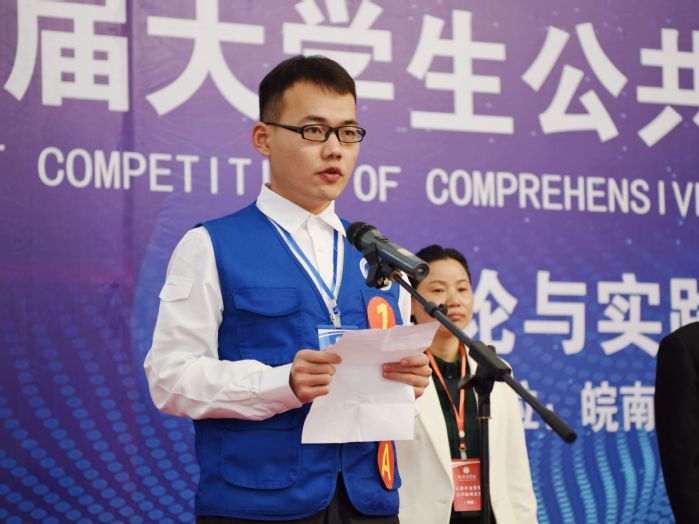 参赛选手代表、阜阳市疾病预防控制中心焦畅同学,裁判员代表m88官网石玮老师分别宣誓。