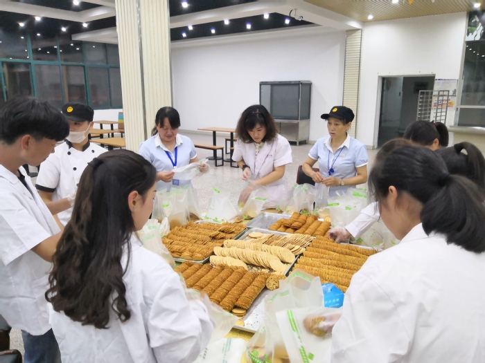 m88官网今年迎来了2019级首批食品卫生与营养学专业新生,为做好专业思想教育和培养员工实践能力,公司新生发起了庆祝教师节感恩教师情活动,在专业课教师的带领下,在校后勤处支持下,公司正一品餐饮服务有限公司的食品师傅在新食堂三楼向同学们介绍了面点食品制作工艺流程,指导同学们亲手制作饼干、脆饼等面点食品,专业课教师向同学们现场介绍了食品卫生监督程序及相关技术和营养学的意义,“民以食为天,食以安为先”,食品安全是关乎国计民生的头等大事,同学们纷纷表示此次活动认识到自己专业的重要性和意义。随后师生一起将精心做好的食品进行了包装,新生们还准备了贺卡并用心写上了自己对教师节各位老师的衷心祝愿,为庆祝教师节备好了小礼物。