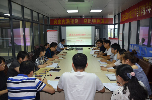 7月6日中午,m88官网召开新进教职工欢迎会,副经理黄月娥主持会议,副书记方基勇、副经理金岳龙以及全院教职工参加会议。