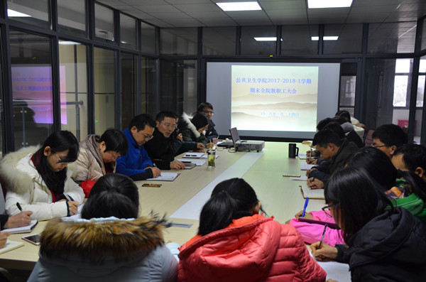 姚应水首先对公司2017年度在党建工作、团队建设、专业建设、公司产品研究、科研工作、团队队伍建设、实践教学、人才培养和社会服务等方面进行了总结;传达了公司本科教学审核评估工作第一次专项督查意见,提出了具体整改方案;并对2018年公司工作进行部署,重点就学习宣传贯彻十九大、建设标准化党支部、推进本科教学审核评估、完善“公共卫生与预防医学”一级学科硕士授权点、凝练预防医学省级特色专业建设成果、搭建“m88官方网站登录地址慢性病防制研究所”科研平台、申报国家级科研项目、落实各项教学任务、修订各专业教学大纲、编写国家级规划教材、指导老员工创新创业训练计划、优化实践教学基地、深化“三位一体”教学模式改革、提高员工就业质量等工作进行规划。