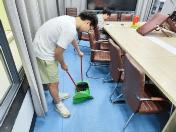 员工第四党支部党员在支部书记的带领下学习了习近平总书记关于新时代劳动和劳动教育的重要论述以及《中共中央国务院关于全面加强新时代大中小学劳动教育的意见》,号召党员们珍惜他人劳动成果,在日常学习与生活中自觉保护环境、捡拾垃圾、树立劳动平等观念,用自己的实际行动让劳动最光荣、劳动最崇高、劳动最伟大、劳动最美丽的理念在校园里蔚然成风。会后,支部党员开展劳动实践活动,打扫公司会议室、党员活动室、教师办公室,为老师和同学创造干净舒适的办公学习生活环境,以实际行动践行“劳动光荣,党员先行”。