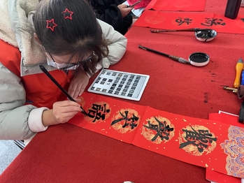 为弘扬优秀传统文化,喜迎兔年新春,传承中华文明,志愿者们通过书法、摄影、手工创意等多种形式,手书一副春联、为家人做一次年夜饭、晒一张创意春节全家福、获得一项劳动新技能等实践活动,用心感受春节习俗背后的文化传承。此外,志愿者们与小朋友们一起剪窗花、写福字,切身体会中华民族五千多年的文明史,感受源远流长、博大精深的优秀传统文化。现场暖意融融,洋溢着浓厚的新春气息。
