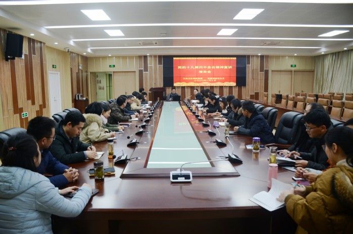文育锋围绕“坚持和完善中国特色社会主义制度、推进国家治理体系和治理能力现代化的重大意义”、 “深刻领会中国特色社会主义制度和国家治理体系的显著优势,坚定中国特色社会主义制度自信”、 “坚持和完善中国特色社会主义制度、推进国家治理体系和治理能力现代化的总体要求、总体目标和重点任务”、 “加强党的领导,确保全会确定的各项目标任务全面落实到位”等四个方面,结合自身工作经历工作实际,对党的十九届四中全会精神进行了系统阐述和深入解读。