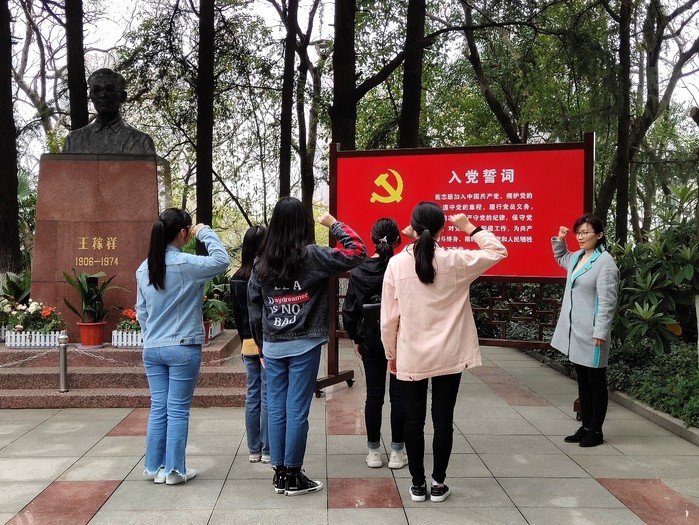 校关工委特邀党建组织员朱丹和员工第一党支部书记贾光蕾带领大家参观王稼祥纪念园,认真聆听解说员讲解王稼祥同志的革命事迹,瞻仰王稼祥同志相关实物,重温党的光辉历程。王稼祥同志的一生,用自己的思想和行动展示了共产党人坚持真理、修正错误、立党为公、光明正大的崇高革命品德和优良作风。通过一幕幕鲜活的场景再现和一份份真实的影像资料回顾,大家感受到王稼祥同志为中国革命和建设事业做出的不朽业绩。朱丹还与同学们畅谈,并用自己的亲身经历鼓励大家要把对党和人民的热爱激情投入到自己的学习和工作中去。贾光蕾带领新党员来到王稼祥同志铜像前,面向党旗进行入党宣誓。