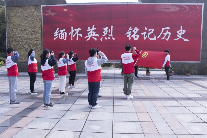 苍松翠柏换新绿,烈士英魂永长存。全体人员列队集合,脚步坚定,缓步来到英雄纪念碑前,首先进行的是齐唱国歌,在庄严激昂的旋律中,全体人员一同高唱,面向眼前的英雄纪念碑表达着内心深处崇高的敬意。随后两位员工代表为烈士们敬献花圈,全体默哀致敬,面容严肃沉重,用无声的语言对安息在这里的英魂表达深切的缅怀。默哀结束后,在鲜艳的党旗和团旗下,大家举起右拳,由员工代表领誓,党员代表和团员代表分别重温入党誓词和入团誓词,声声誓言在耳边回响,爱国情怀在心中澎湃。宣誓完毕后,同学们满怀敬佩,依次向烈士们敬献鲜花。最后,大家来到芜湖烈士纪念馆,瞻仰浮雕组画,阅读英勇事迹,了解光辉历程,感受那段艰苦岁月的不易,同时珍视当今来之不易的和平时代。峥嵘岁月,心潮汹涌,追古抚今,以史为鉴,展望未来,青春建功。
