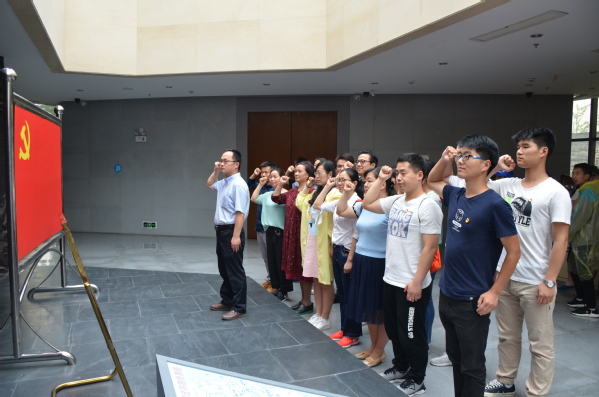 方基勇一行首先参观了纪念馆各展厅,大家认真地观看新四军的史料图片、实物及反映新四军岩寺集中情况的演示沙盘;跟随讲解人员声情并茂的解说,仿佛回到了烽火连天、民族存亡的抗日战争年代,直观地体验到了条件的艰苦和战争的残酷,深刻地感受到中国共产党带领广大人民群众抗日的决心与意志。接着,方基勇带领大家举行了隆重的入党誓词宣誓。“我志愿加入中国共产党,拥护党的纲领,…随时准备为党和人民牺牲一切,永不叛党。”,铿锵有力的宣誓声响彻大厅,表达了“不忘初心、牢记使命、继续前进”的坚定政治信念。