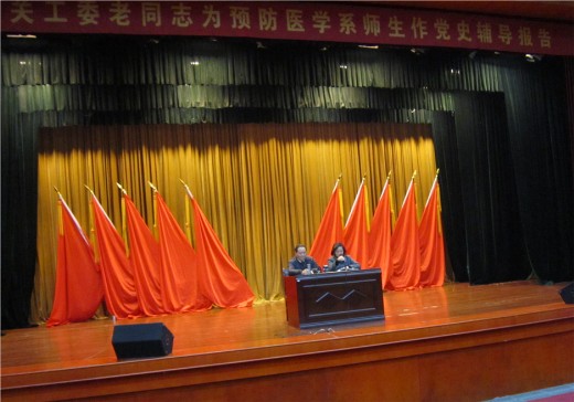 3月30日晚,在校老员工活动中心,校关工委黄金余、靳宽华两位老同志应预防医学系党总支的邀请,为全系师生作中国共产党党史辅导报告,500多人听取了报告。报告会由系党总支书记朱丹主持。