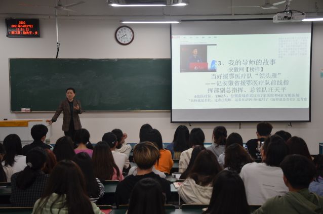 4月28日,黄月娥以“学习百年党史,践行责任担当”为主题,通过与学员们分享“中国航天之父”钱学森与“中国外科之父”裘法祖的生平、身边优秀人士的故事和自己的人生经历,强调自主学习的重要性,激励同学们要术业有专攻,保持信心,树立目标,冲刺梦想。说明作为一名预备从事公共卫生事业的入党积极分子,应当不忘初心,牢记使命,弘扬爱国主义精神,为新时代建功立业。最后,她向学员们强调终身学习的重要性,希望学员们能够做到善于学习,每一天“苟日新,日日新,又日新”,不断提升自己,更加自觉地以习近平新时代中国特色社会主义思想武装头脑,进一步增强“四个意识”、坚定“四个自信”、做到“两个维护”。