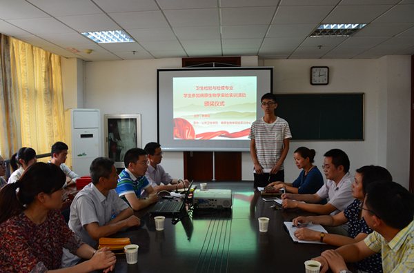 首先,由m88官网2014级卫生检验与检疫专业本科生代表李宁发言,他向各位领导和老师汇报了同学们参加实验实训活动的全过程,并分享了自己通过实验实训活动对所学专业有了更深的认识,实验操作能力有了进一步提高,同时,也增强同学们的学习兴趣和班级的凝聚力。接着,教务处对在实验实训活动中表现突出的15名同学颁发了荣誉证书予以表彰。最后,教务处处长姚应水作了总结性讲话,他在充分肯定同学们取得成绩的基础上,指出卫生检验与检疫专业是公司新办专业,此次实验实训活动的开展非同凡响,意义很大,对专业学习与专业建设起到了积极推动作用,要求同学们继续保持这种刻苦钻研、努力奋进的精神,为将来从事卫生检验与检疫工作打下扎实基础。
