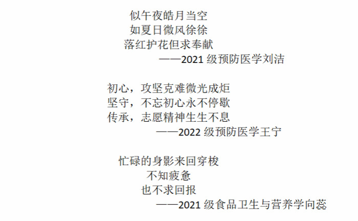 12月3日,公司开展“三行情诗”征集活动。同学们以三行情诗的形式,以笔写意,将心中对志愿者的讴歌、赞扬和感恩之情浓缩于三行文字之中,展现出新时代青年蓬勃向上,奋发有为的良好精神风貌。短短三行文字,是信也是诗,虽语言简短,但意味深长。“三行情诗”活动的成功开展不仅弘扬了志愿精神,还有利于我们继承和发扬优秀精神品质,不忘初心,以奉献扬青春,与社会共进步。