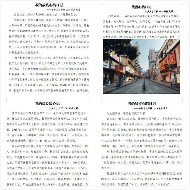 千里传书,共话成长。2017级、2019级,积极参加公司组织的“战疫心情日志”评选,他们用文字记录成长,用文字书写感动。“疫情以前,只知岁月静好;疫情之后,才觉国泰民安。”这句话道出了很多学子的共同心声。此次疫情对举国上下而言,不仅是一次严峻挑战,更是让广大学子感受到了中国特色社会主义制度的显著优势,进一步坚定了四个自信。