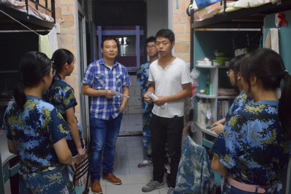 为使2018级新生更快、更好地适应新环境,及时解决新生入学后的各种问题,9月11日晚,2018级新生班主任梁雅丽、邹云飞、朱玉、常薇薇老师以及新生辅导员罗文杰一行深入新生宿舍进行走访慰问,为他们送去亲人般的关怀和温暖。