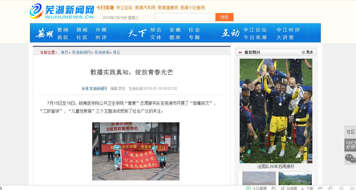 不忘初心,牢记使命,实践真知,青春建功。此次m88官网多支志愿服务队在安徽省多地开展主题鲜明的社会实践活动,不仅引导同学们深入理解国家发展战略,践行学科理论知识,在实践中汲取知识、增长才干,激发成才报国的责任感和使命感,而且“芦花”志愿服务队在安徽省第四届志愿服务大赛中荣获金奖,更得到了社会的高度赞同,同时也被中国青年网、芜湖新闻网、老员工新闻网、宣城市团委等多家主流媒体宣传报道。