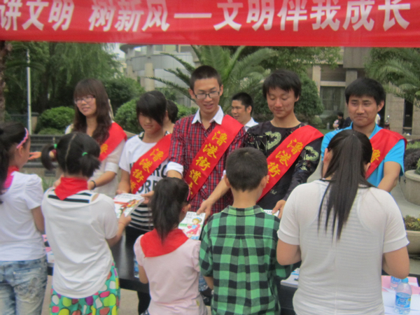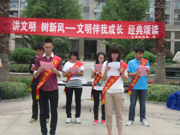 5月26日上午,预防医学系“情暖e家”志愿服务队来到汇成名郡社区参加“讲文明、树新风――文明伴我成长”经典诵读活动。 在本次活动中,志愿者们积极协助社区工作人员布置会场,做好活动准备工作,如搬放桌椅等,同时表演了精心准备的朗诵节目《我们永远记得――雷锋》。志愿者们本着“奉献 友爱 互助 进步”的青年志愿者精神,一丝不苟、积极认真地完成每项工作,推动活动圆满完成。