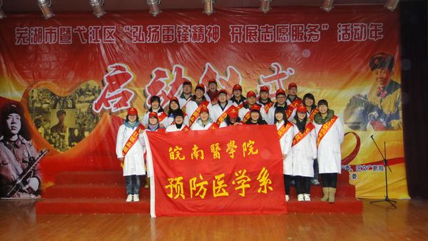 3月3日上午,预防医学系团委选派20余名员工干部作为弋江区老员工志愿者的代表参加了芜湖市暨弋江区“弘扬雷锋精神,开展志愿服务”活动年启动仪式。 仪式现场,作为老员工代表队的青年志愿者们协助主办方进行力所能及的幕后服务工作,帮助启动仪式有条不紊的开展。期间,志愿者们每个人都以意气风发的精神面貌认真聆听雷锋事迹,学习雷锋精神,思考着当代老员工应如何将雷锋精神更好地传承下去。