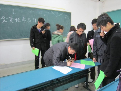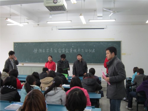 为切实做好员工安全防范工作,维护员工宿舍的正常秩序,为员工营造一个安全、舒适、健康的学习和生活环境,确保每个员工的日常安全。预防医学系党总支高度重视,多次召开辅导员工作会议,研究员工宿舍管理工作对策。除采取一系列管理措施外,近日,又在广泛征求员工意见的基础上制定了以宿舍安全为主要内容的员工宿舍安全责任书,张贴在各寝室。并于3月21日,在1号教学楼104教室举行了辅导员和员工寝室长签字仪式。预防医学系团委负责人、辅导员及各寝室长参加了会议。会议由员工工作秘书黄月娥老师主持。