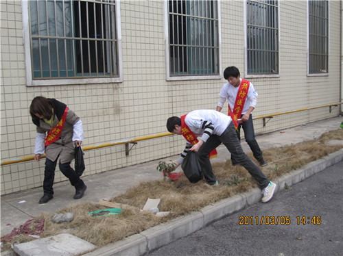 3月4日晚,预防医学系团委召开会议布置“青年志愿者服务月”活动。3月5日,预防医学系团员青年们开展了“青年志愿者服务月”首次活动,十名志愿者来到新食堂对食堂周围环境卫生进行了清扫。虽然天气寒冷,但志愿者们坚持统一着装,身披绶带,干劲十足,不怕脏不怕累,迅速的清理了校园垃圾(橱窗广告,废纸张,玻璃碎片等),赢得周围同学和宿管员的称赞。约两小时后,清理工作圆满完成, 取得预期效果,同学们为自己能够为卫生、文明、和谐校园建设做出努力高兴不已。