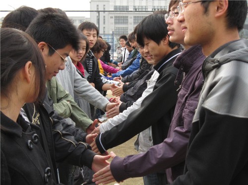 经过前期精心准备和周密布置,活动开展非常顺利。在“集体问好”、“潜力击掌”项目的进行中,同学们得到了充分的热身,情绪高涨,接下来,“进化论” “虾王蟹后” “公司创建” “松鼠与大树”等项目依次进行。每一个项目既精彩又饱含深意。“公司创建”活动中在让同学们意识到沟通与协作的重要性,认识到怎样才能在不同的环境下扮演好自己的角色。